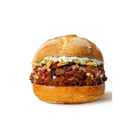 Rosetta artigianale con carne di manzo sfilacciata al ragù napoletano, sott'olio di salame napoletano/uvetta/pinoli, cialda di pecorino, maionese all'aglio...