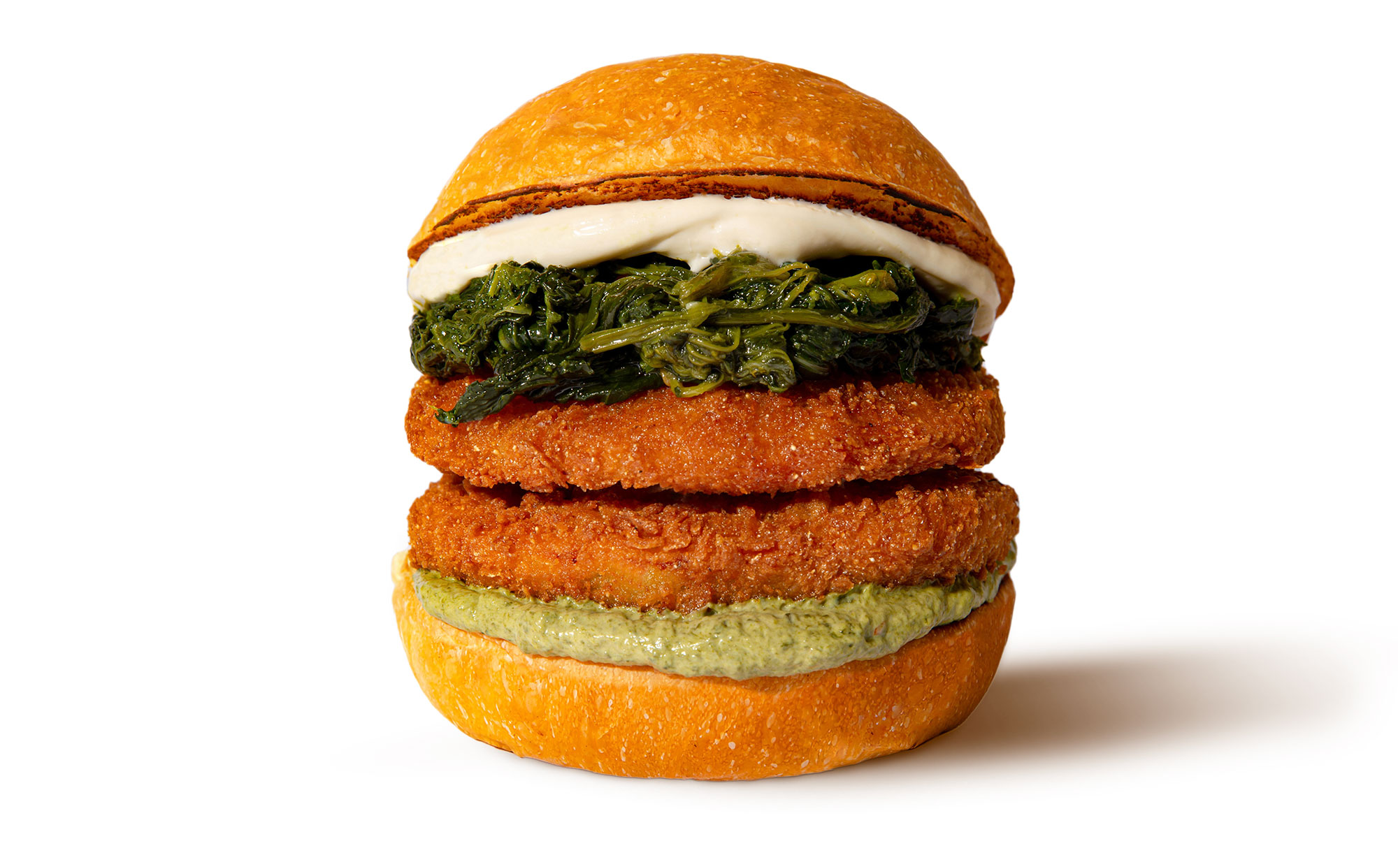 Doppia provola impanata nei corn fakes e fritta, friarielli, maionese, salsa ai friarielli
