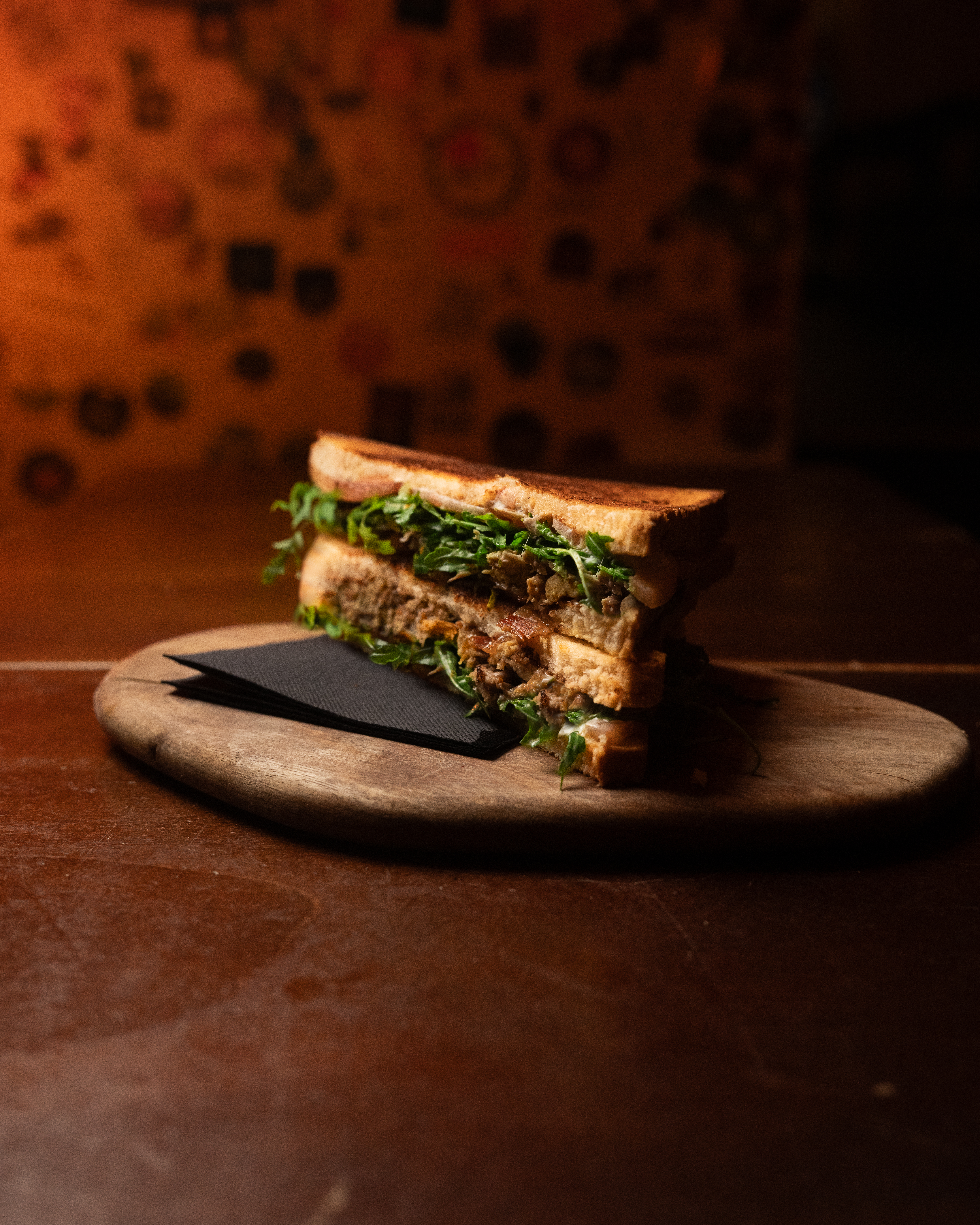 Toasted bread with juicy chicken, cherry tomatoes, bacon, lettuce and basil mayo