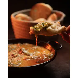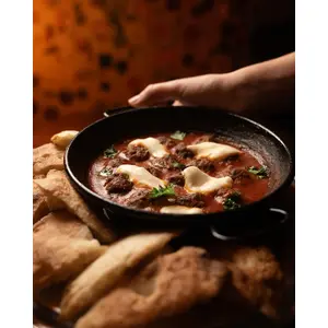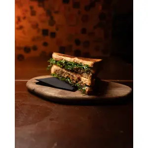 Toasted bread, egg in tomato sauce, crispy bacon and melted provola